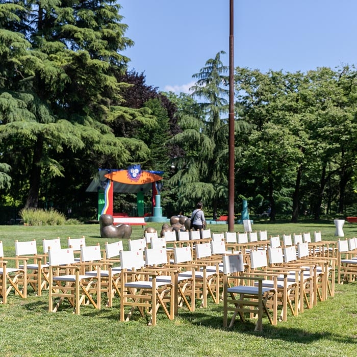 In questa edizione ospiti d’eccezione le poltrone Director in Robinia firmate Fiam, sponsor tecnico dell’evento. Le poltrone Director: una combinazione tra la sostenibilità ambientale e design italiano. L’azienda Fiam, si preoccupa in prima persona di produrre energia pulita utilizzando un impianto fotovoltaico eco-friendly, facendo scelte responsabili e sempre più attente e ad una produzione responsabile ed a basso impatto ambientale. Parlando del Design Italiano, considerata un vero è proprio status symbol, questa poltrona affonda le sue origini nell’antico Egitto, risulta infatti che prima di ospitare famosi registi e star del cinema, prima ancora di diventare un passepartout come sedia da pranzo in esterno ed in interno, fosse utilizzata dagli Ufficiali dell’esercito Egiziano. La produzione avviene interamente in Italia, con materiali di prima qualità, utilizzando legni certificati e tessuti tecnici ad altissima resistenza. Chi sceglie la Director di Fiam è attrezzato per il più bel film della propria estate, che sia per gli spazi domestici o per affascinanti arredi nel settore contract. Il telaio è in legno di Robinia, legno europeo di origine certificata che garantisce un'elevata resistenza all'aperto e caratterizzato dalla tipica "stagionatura cromatica" in cui i colori se lasciati al naturale virano dal biondo chiaro a toni più scuri e grigi. Tessuto in olefine o texfil, disponibile in vari colori. E’ una seduta da esterno certificata PEFC®, una certificazione che attesta che le forme di gestione boschiva rispondono a determinati requisiti di “sostenibilità”.