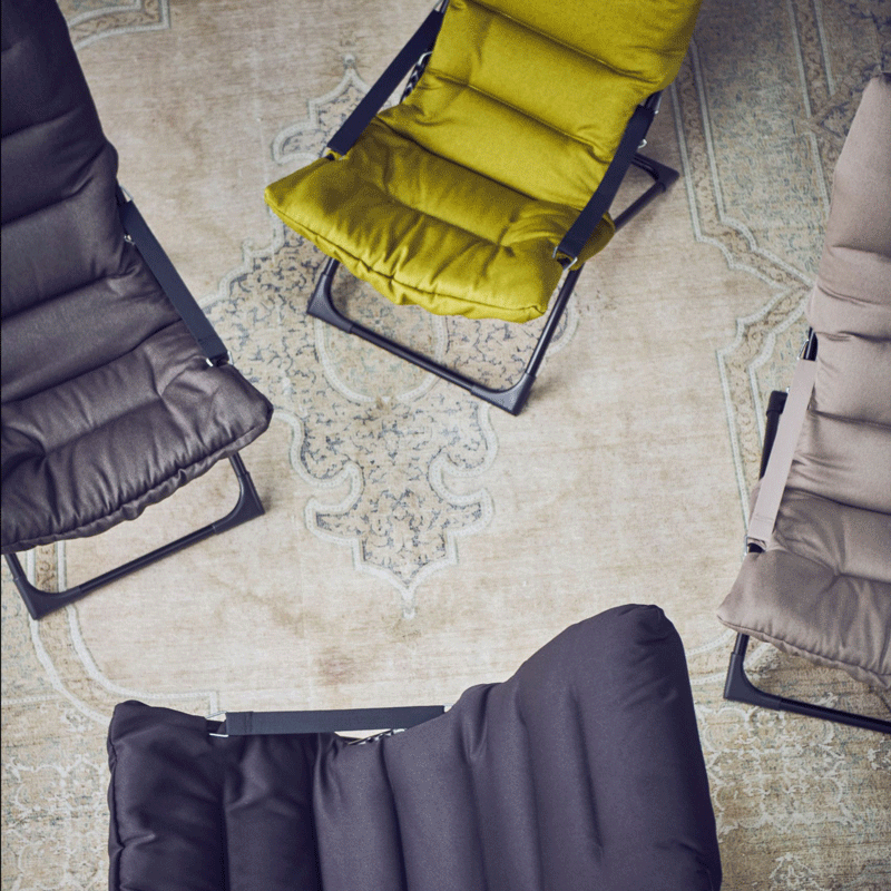 Il modello di partenza, ideato da Francesco Favagrossa nel 1977 è con telaio in ferro cromato o verniciato, ideale per gli esterni coperti; viene poi sviluppata una versione ancor più performante in alluminio, per rispondere a esigenze differenziate: massima leggerezza per chi deve spostarla più volte al giorno, o per chi, destinazione mare, lago o montagna, non vuole rinunciare ad un comfort che non scende a compromessi. Le imbottiture sono realizzate con tessuti tecnici removibili e lavabili, e con sapienti accorgimenti per drenare l’acqua e asciugare in tempi rapidi.