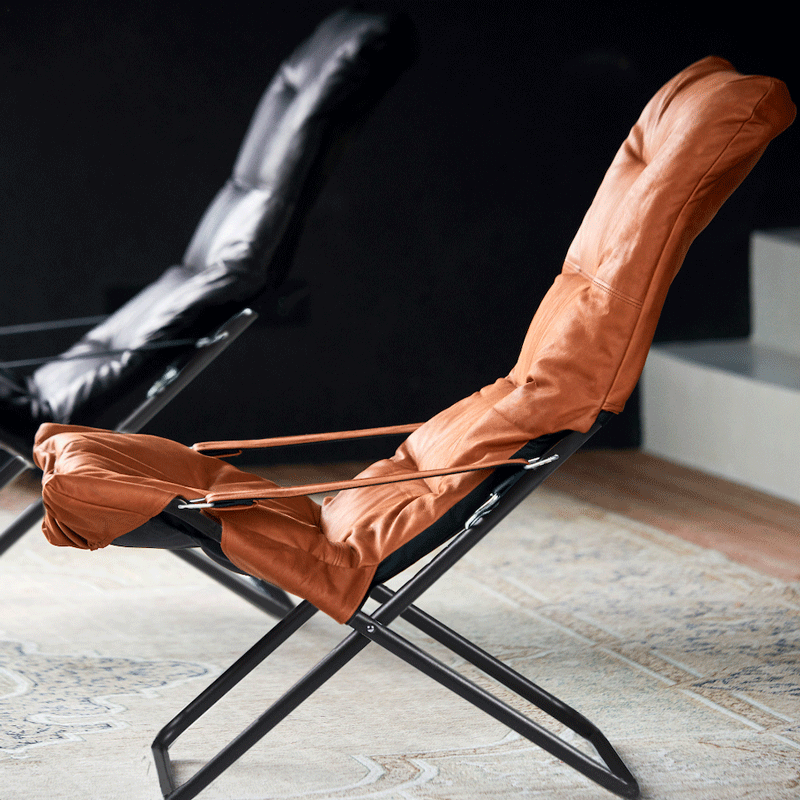 - Fiesta in pelle 127 SL CR: Con il rivestimento in vera pelle, nelle varianti cognac e nero, Fiesta non passa inosservata, entrando a pieno merito negli arredi indoor. La seduta è realizzata in vera pelle realizzata su bufali, conciata al cromo, tintura all’anilina passante in botte, rifinita all’acqua in tinta unita.