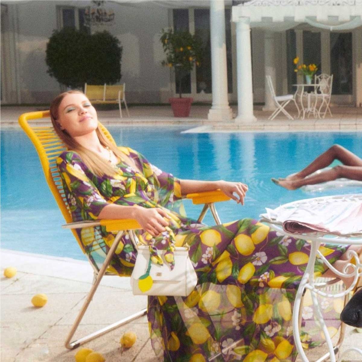 Spaghetti, la leggendaria poltrona relax da esterno dei mitici anni ’60 firmata Fiam, è stata scelta dal fotografo Lorenzo Dispensa, dell’agenzia Aura Photo Agency, per l’esclusiva Lemon Collection di Dolce & Gabbana x Mytheresa.com, uno dei più celebri e-commerce della moda di lusso. Nella versione gialla, la Spaghetti si fonde benissimo con i colori della collezione Lemon e accompagna per tutta la campagna le splendide modelle, diventando anch’essa protagonista dello shooting. I colori degli agrumi richiamano alla mente anche profumi e ricordi delle estati al mare, a sorseggiare granite a bordo piscina.