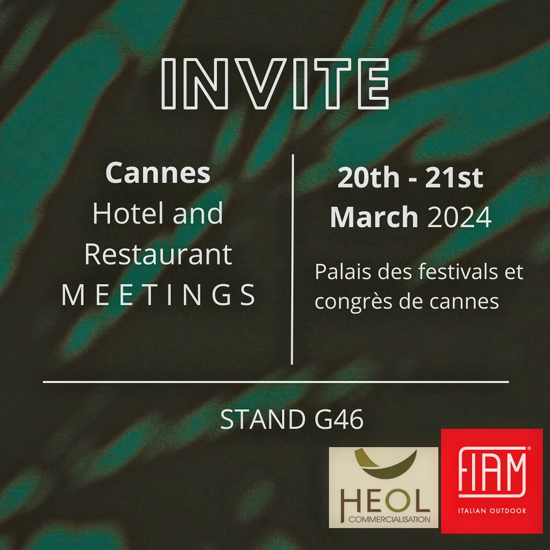 Fiam va a Cannes per l' "HOTEL & RESTAURANT MEETINGS" Il Salone dedicato all'Ospitalità, al Benessere e alla Ristorazione. Non mancate