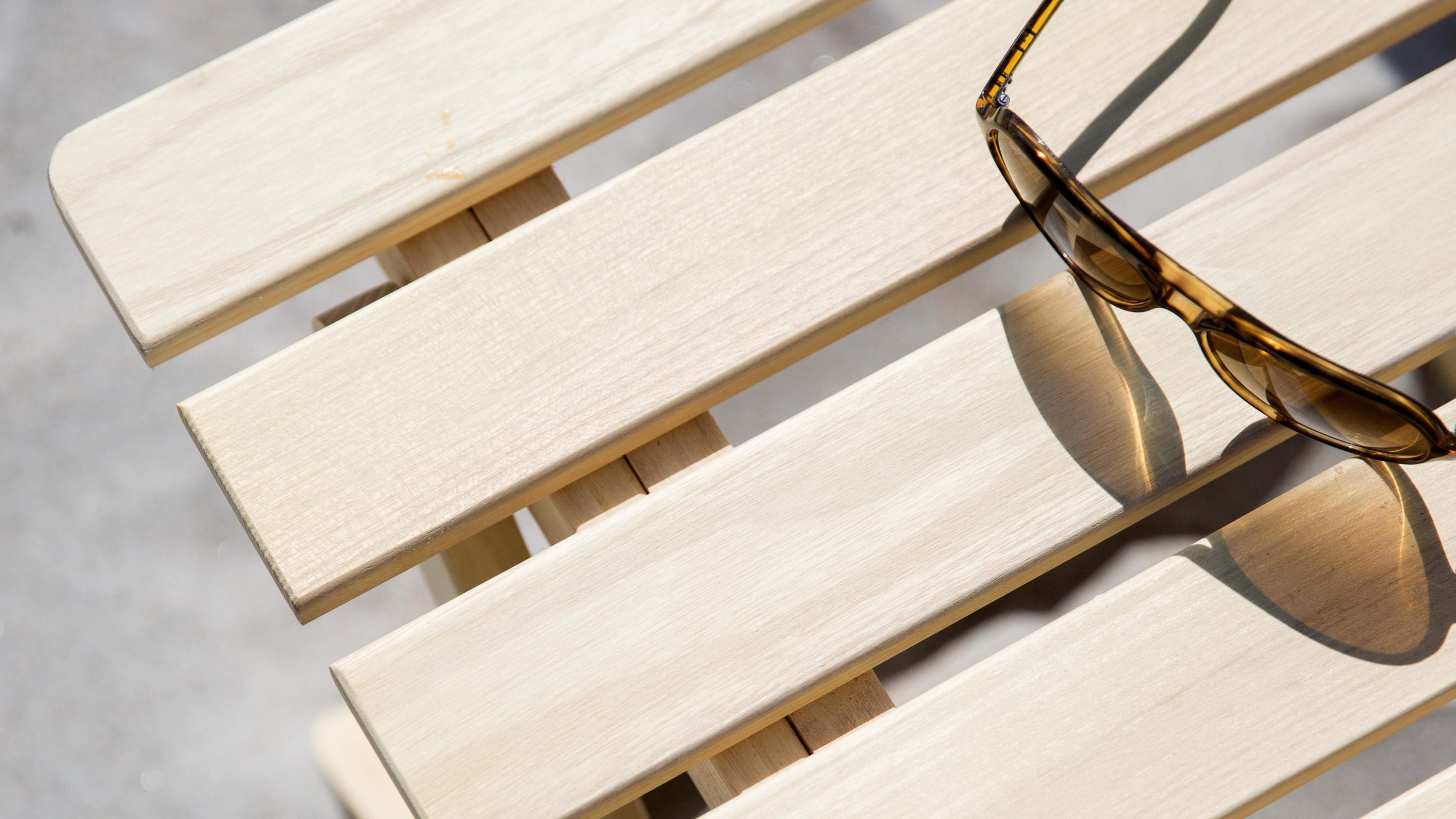 MATTY - Sgabello poggiapiedi da esterno in legno di Frassino