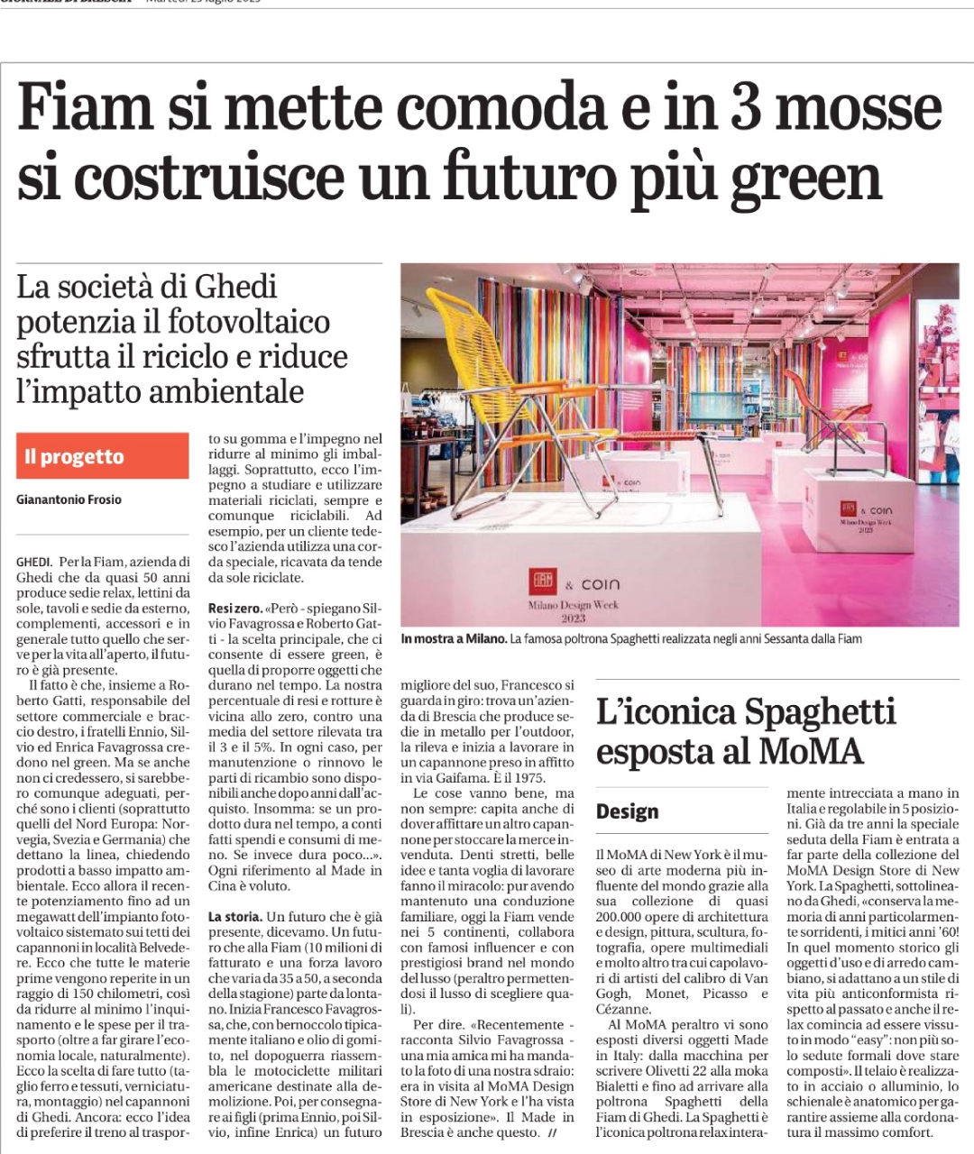Giornale di Brescia - 20/09 - Fiam e un futuro più Green